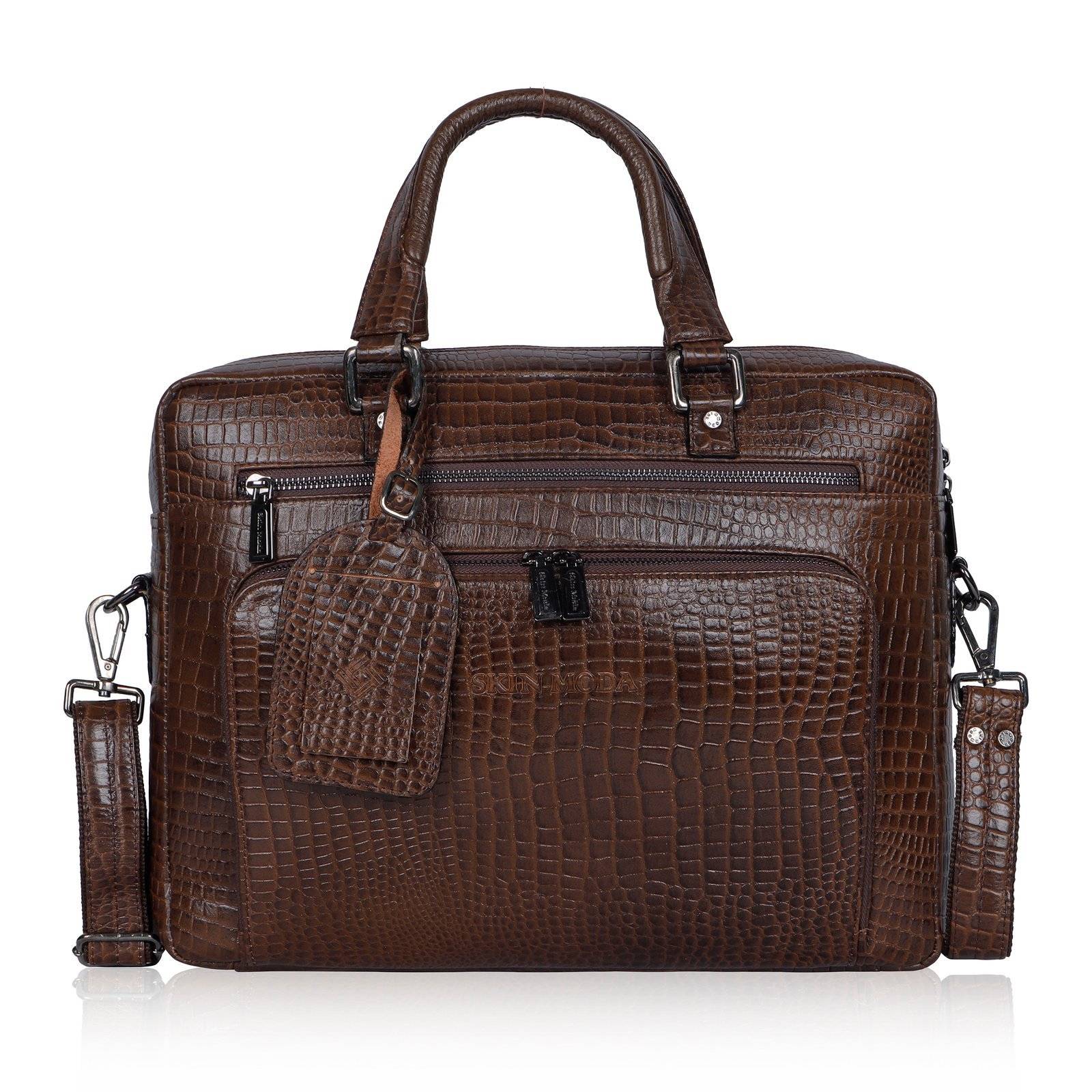 • Premium Croco Leather: Made from high-quality, full-grain croco-embossed leather, this laptop bag offers a luxurious texture and finish that is both stylish and durable. The deep tones of the leather enhance its sophisticated appearance, making it an ideal accessory for business meetings, travel, or daily office use.