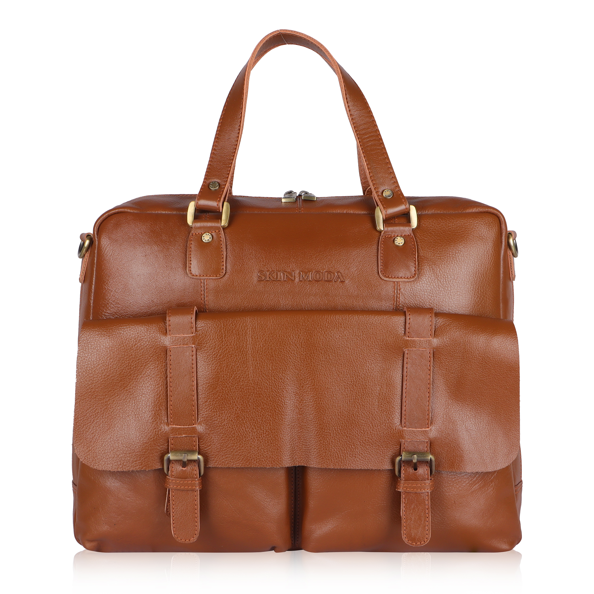 Carry your essentials in style with the Skin Moda Full-Size Laptop Bag, crafted from 100% full-grain natural leather. This elegant tan bag combines classic craftsmanship with modern functionality, making it perfect for professionals and travelers alike.